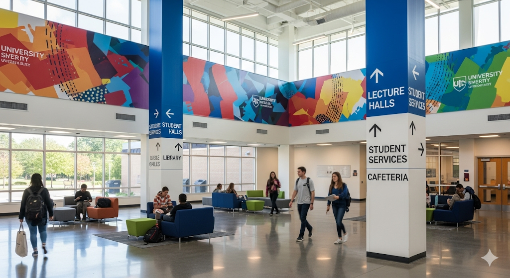 University & Educational Signage: Integrating Wall Wraps and Wayfinding Across Campuses