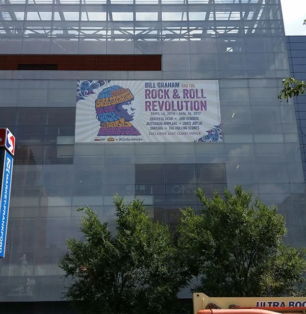 The National Museum of American Jewish History in Philadelphia is hosting the Bill Graham and the Rock & Roll Revolution Special Exhibition from September 16, 2016 to January 16, 2017. Color Reflections printed and installed this massive banner to promote the exhibit. #GrahamRocks