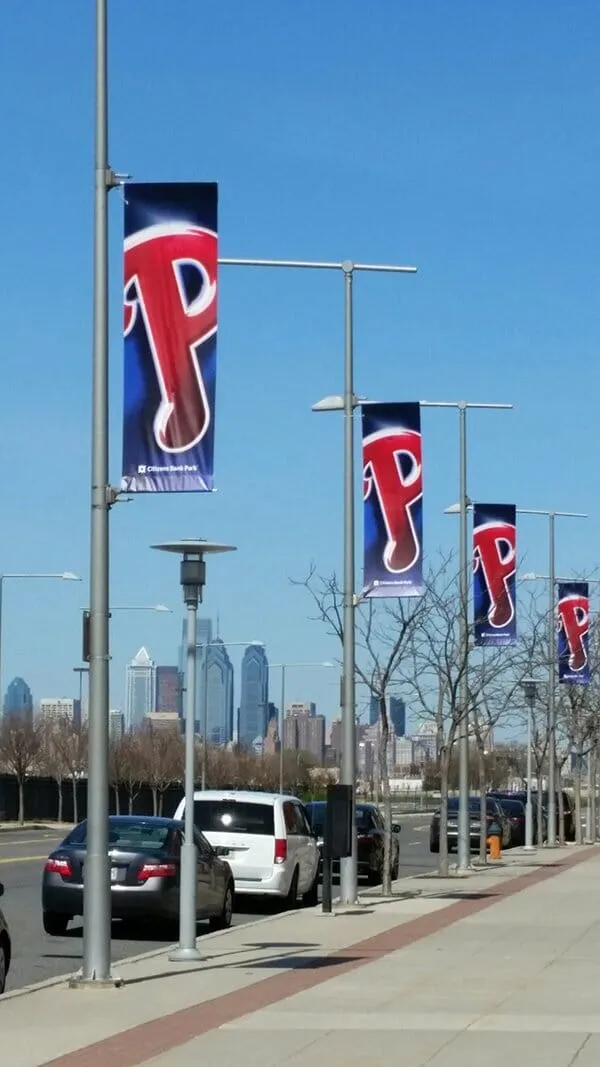 The Philadelphia Phillies are the last sports team to bring a championship to the city of Philadelphia. So for that, we will always appreciate them! CR Philly printed these custom pole banners that hang up around the city to promote Citizens Bank Park and the Philadelphia Phillies. They are a great way to showcase a sports team, an upcoming event in your city or local business. Please contact us today if you are interested in any of our services!