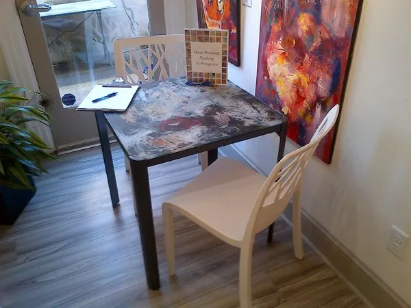 We did some printed table tops for Grosfillex to display at a gallery event they were involved with in Lancaster. “The table tops fit perfectly and look really nice. Thanks again!”