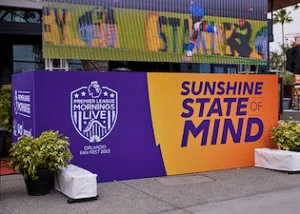 The Orlando Color Reflections team helped bring NBCS’ Premier League Mornings Live to life at Universal CityWalk by creating banners, decals, and other signage for the event. This was for a two-day fan festival celebrating world-class soccer.