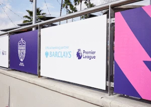 More than 9,600 fans attended the event across the two days. They enjoyed eight massive LED screens for live match viewing, plus fans also had a chance to experience talent meet-and-greets, player visits, free merchandise, club mascots, and take photos with the Premier League trophy. Custom large and small format signage printed by Color Reflections was visible throughout the entire area including stage graphics, standees, pole flags, barricade signage, and more!