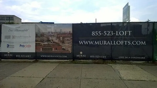 At the corner of Broad & Spring Garden in Philadelphia, Pennsylvania, you will find these Mural Lofts barricades that were done by the Color Reflections Philly crew. Barricades are a great way to promote your business in a temporary fashion. For other creative ways to advertise your company, please contact us today and find the Color Reflections location nearest you!