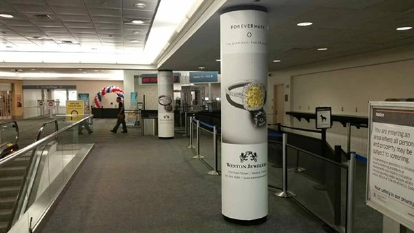 Last week we showed you some work that we did for Reebok at the Ft. Lauderdale Airport. This week we are back at the airport but in Terminal 4 and we are featuring a different type of custom graphic. These graphics are column wraps for Weston Jewelers. Further proving Color Reflections can literally place your business anywhere and on anything! Please contact us today to find out how we can grow your business…